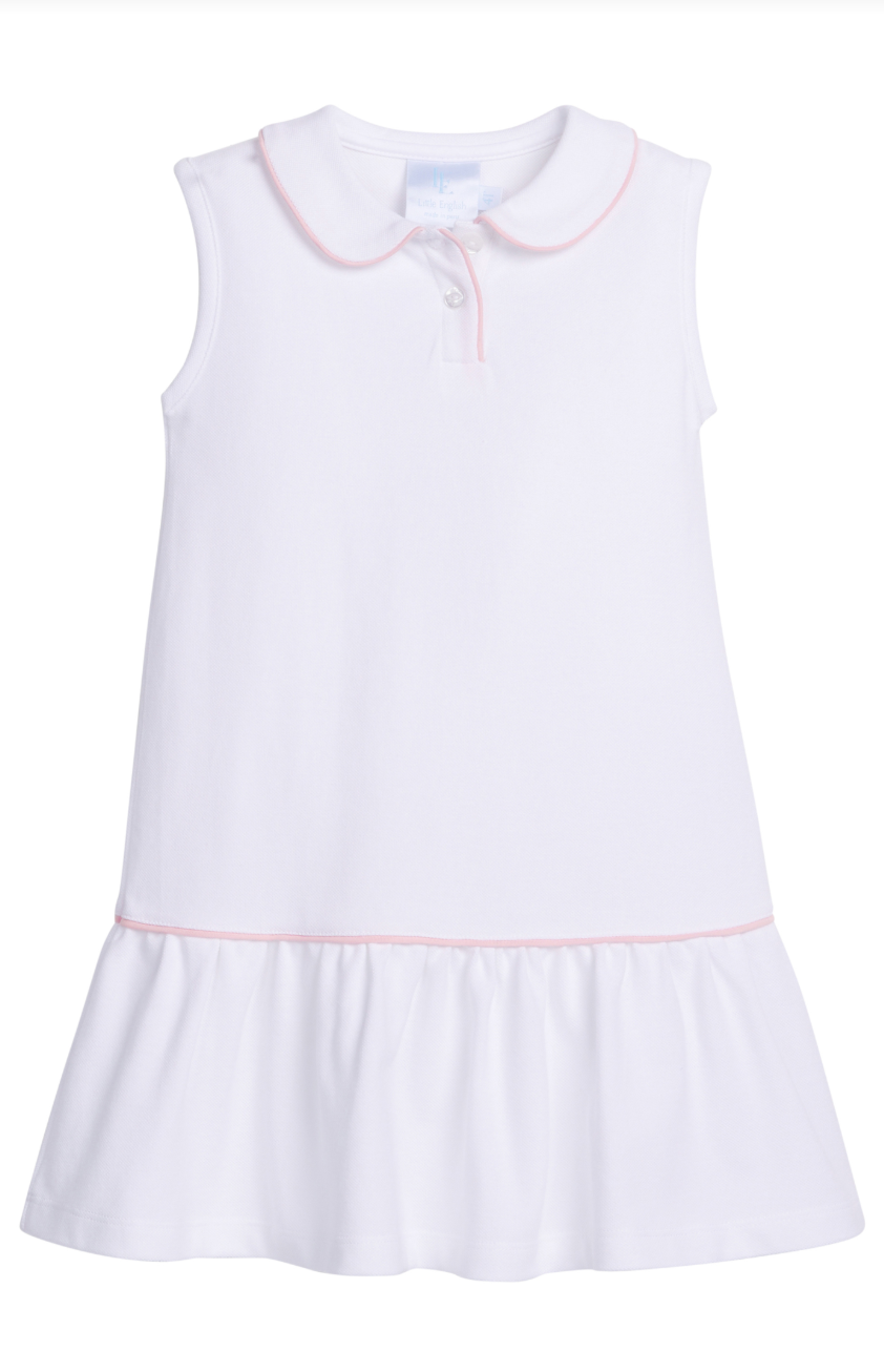Pink Trim White Sleeveless Polo Dress