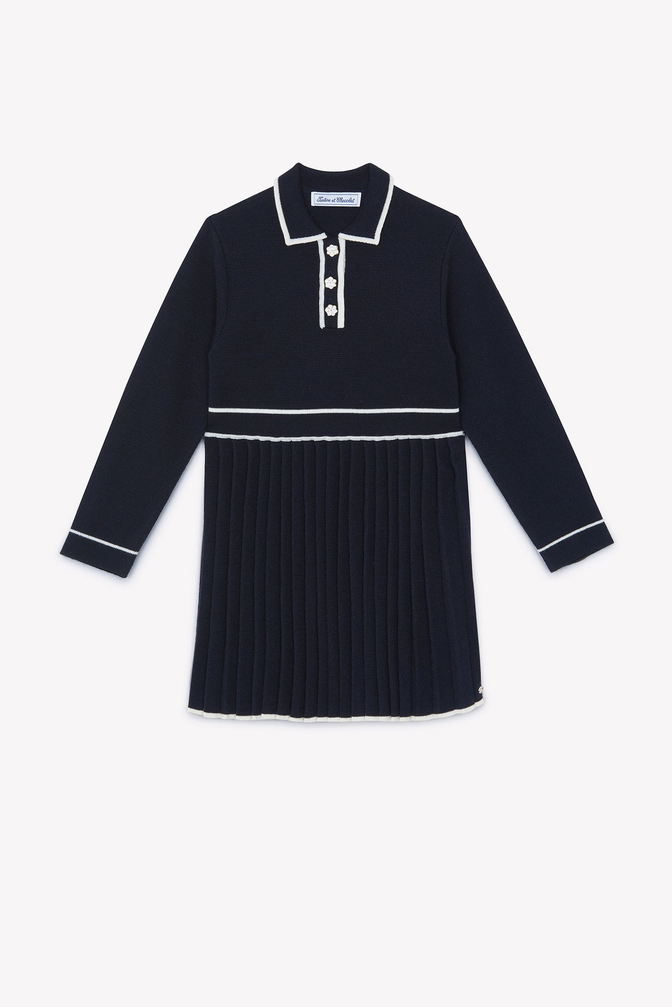 Tartine et Chocolat Navy Knit Pleated Dress
