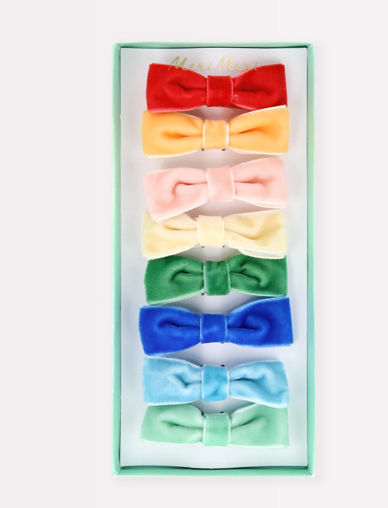 Rainbow Velvet Bow Set