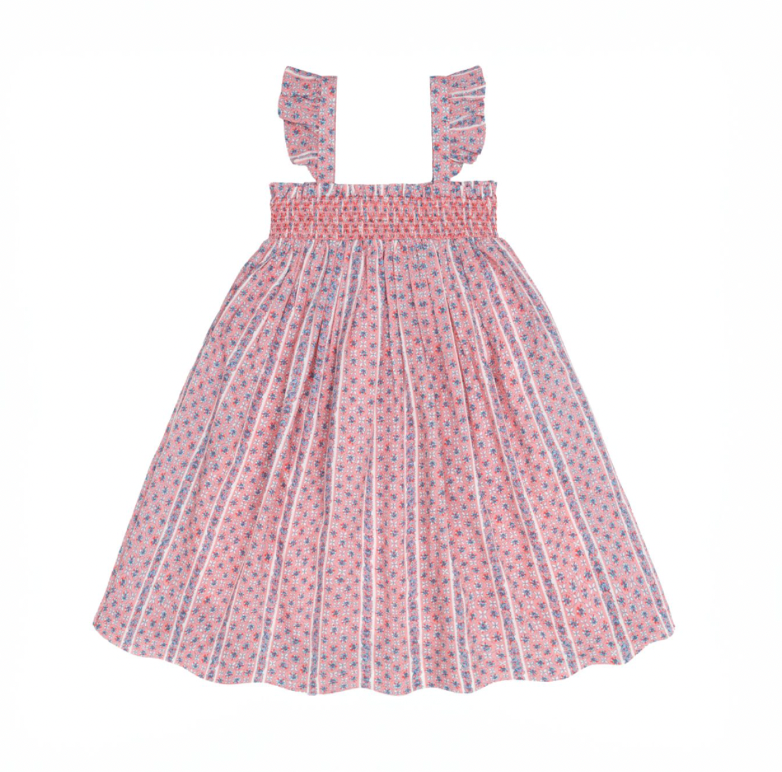 Floral Tile Smocked Dress With Flutter Sleeves