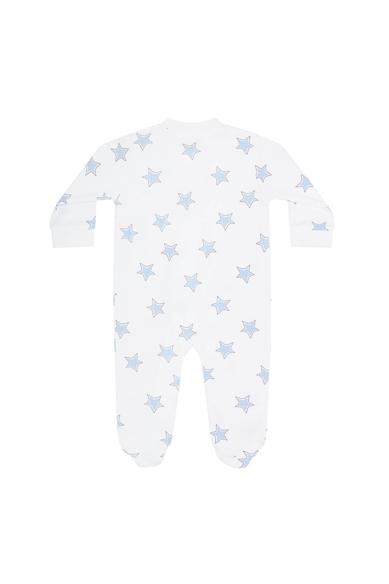 Blue Stars Print Zipper Footie
