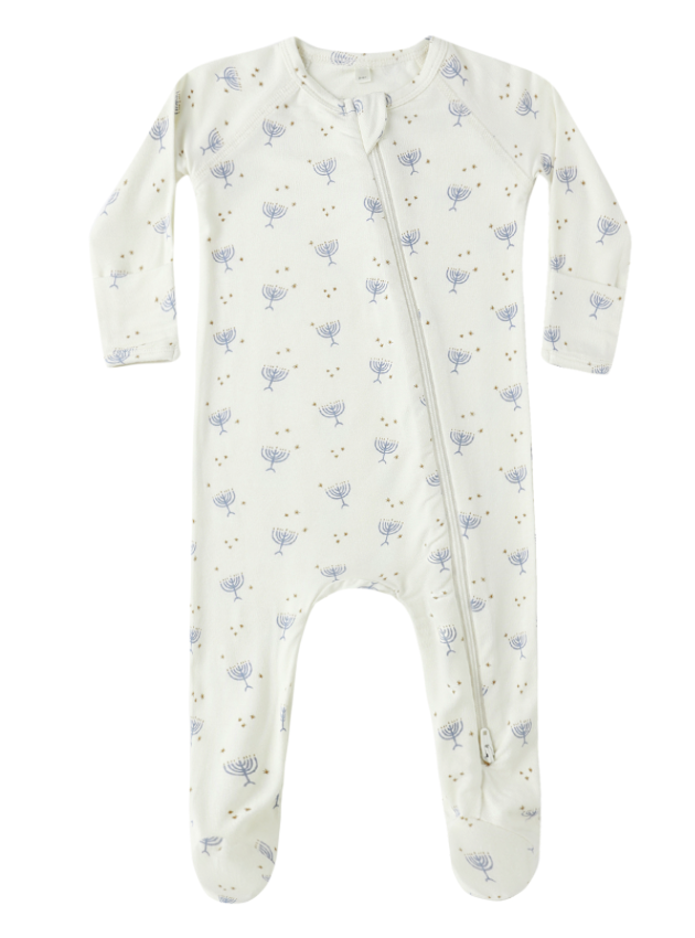 Quincy Mae Hanukkah Bamboo Zip Footie