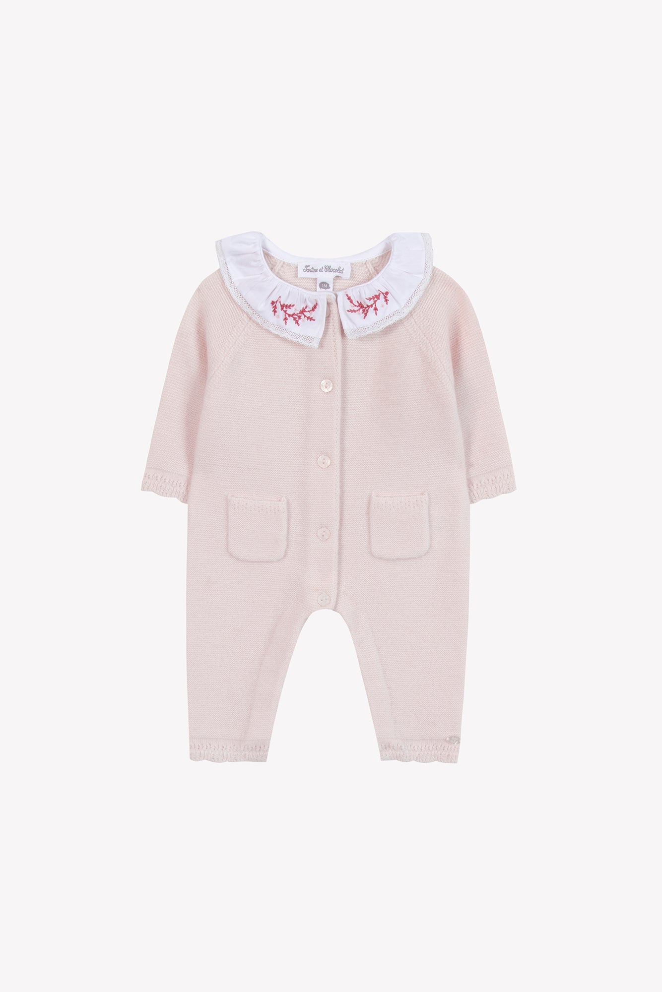 Pink Wool Cashmere Embroidered Romper